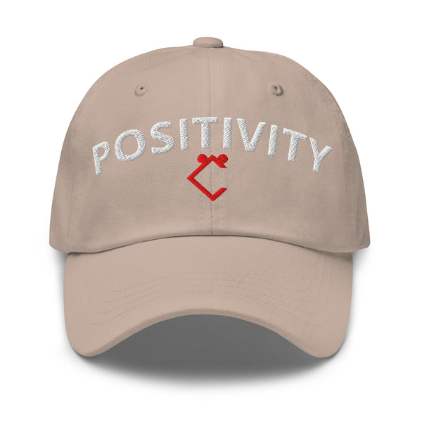 This "POSITIVITY" embroidered cap is the one. This one's got a low profile with an adjustable strap and curved visor.🙂