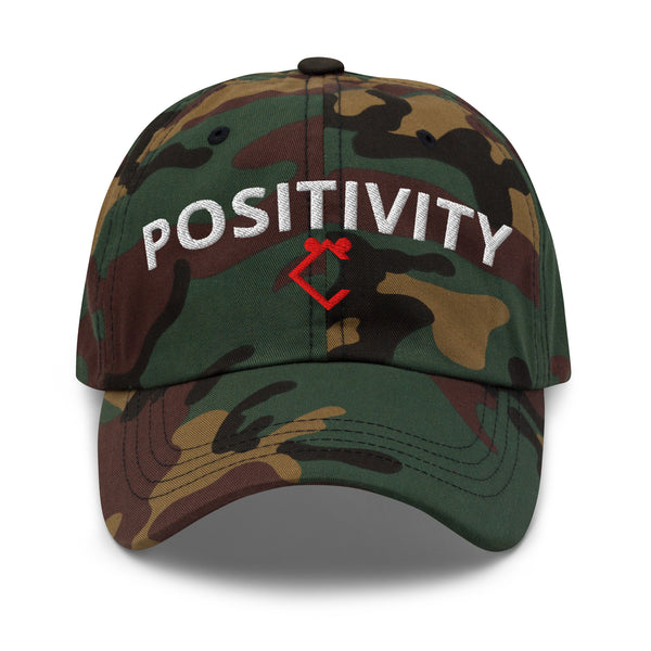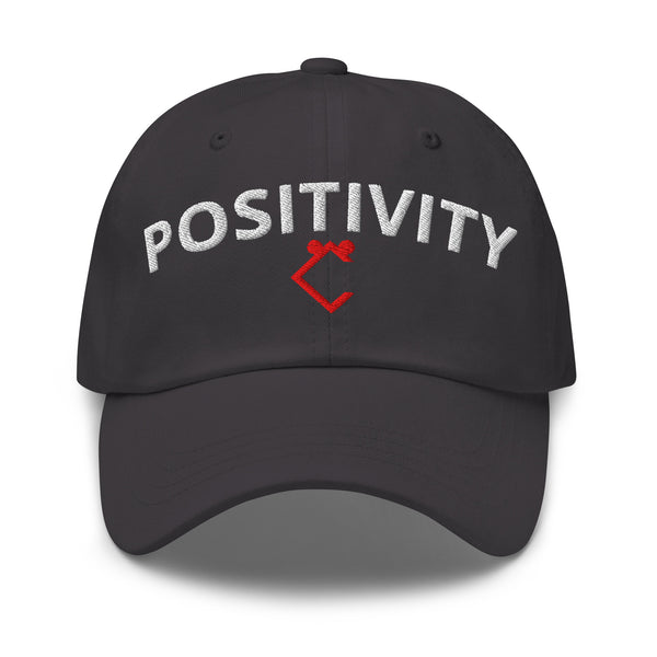 This "POSITIVITY" embroidered cap is the one. This one's got a low profile with an adjustable strap and curved visor.🙂